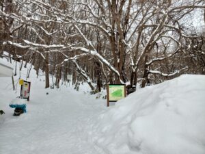 1月20日は「大寒」です。暦の上では一年の中で最も寒い日と言われています。朝からどんよりとした曇り空で、午後からは雪模様という予報が出ていました。寒さにめげず一時間あまりの道のりを徒歩で「藻岩山」登山口へ向かいました。日中の最高気温が➖3℃なので毛糸の手袋をはいていても手が悴んでしまいます。