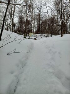 「慈啓会病院」登山口からは、冬の方が歩きやすいのです。この辺りは春先や降雨の後にはドロドロ状態になることが多くぬかるみに足を取られ登山靴をかなり汚してしまい何度か苦い経験をしています。