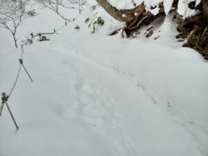 冬の登山は雪の踏みつけ道をただ辿っていくので、そういう意味では楽なように思われます。