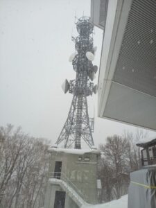 登山口から一時間ほど歩き、やっと小さく「藻岩山」山頂のアンテナが見えてきました。