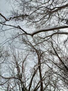 見上げると、上の方も奇妙な枝振りでした。