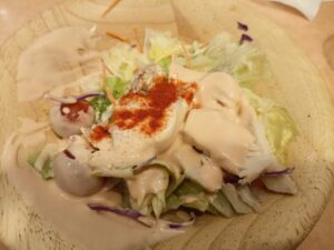 大盛の「チキンのサラダ」を分けることにしました。