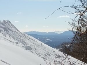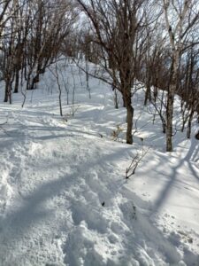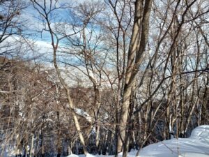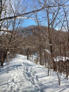 日曜日でしたので登山者が多く、雪道の細い登山道を行きちがう時にはお互いに譲り合いながら歩きました。年齢を問わずに「どうぞ」・「こんにちは」・「ありがとうございます」・「お気を付けて」などの言葉が行き交い、気持ちが和まされました。