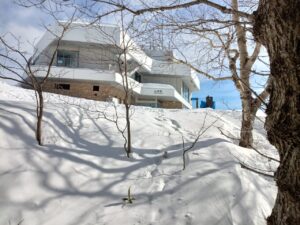 展望台、南西方面の「恵庭岳」周辺には、真っ白で低い雲がかかっていました。雨雲なのでしょうか。それにしても支笏湖周辺の山々の中で距離的には違いがないのに、なぜ「恵庭岳」辺りだけなのかが不思議でした。