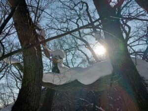 そして、樹木にへばり付いた雪が鳩かカラスが止まっているように見えました。