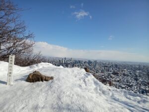 青空が眩しい「円山」山頂で