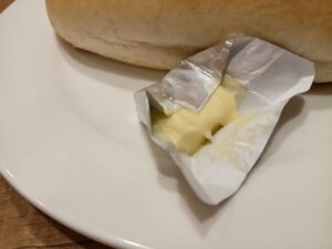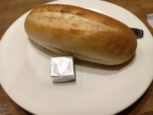 〜 ソフトフランスパン、バター添え 〜 バターが多めで、半量でも良く残してしまいました。