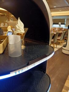 追加でデザートとして「ソフトクリーム」にしてみました。ロボットが小さな「ソフトクリーム」だけを運んできましたので、溶けないうちに急いでいただきました。