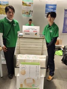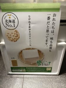 チカホを歩いていると、「憩いの空間 6番出入り口横」で北海道のいくつかの町村特産品が販売されていました。特に、買う予定はしていなかったので素通りするつもりでしたが、「試食してみませんか?」と、声をかけられ「長沼町」のお豆腐を一口試食するとその甘さに釣られて立ち寄ってしまいました。
