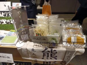 いきいき母さん土曜市(岩見沢市)、「浦臼町農産加工研究会・浦臼観光協会」(浦臼町)、「合同会社びほろ笑顔プロジェクト」(美幌町)、「ベジタブルワークス株式会社」(真狩町)、「チーズ工房1103」(日高町)、「十勝品質事業協同組合」(音更町)、「ながぬま農業協同組合青年部」(長沼町)、「歯舞マリンビジョン協議会」(根室市)、「 N P O法人 やくも元気村」(八雲町)が出店していました。その中で思い出深い「根室市」・「八雲町」・「長沼町」のブースで買ってみました。