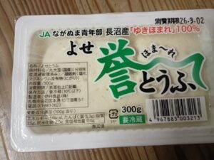 夕食時に、早速、冷奴で「よせ誉とうふ」を頂いてみました。大豆のほんのりとした甘味を感じ、とても美味しいお豆腐でした。