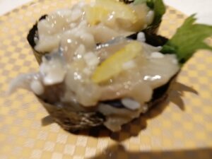 「シャリ」は小さめで食べやすく、「ネタ」は口を頬張らなければならないほど大きめでした。勿論、「ネタ」は新鮮!