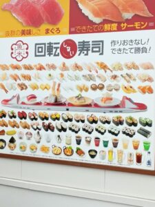 魚べい(白石栄通店)で美味しい生寿司をお腹いっぱい食べてから、「キテネ食品館」で買い物をして