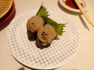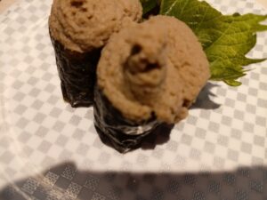 「かにみそ」も頼んでみました。子供の頃、地元産の毛蟹はとても安くよく父が仕事帰りにお土産として買ってきてくれたものです。今は漁獲高が減ってきたのでしょうか。高くて、あの頃のようには気軽に食べられなくなってしまいました。