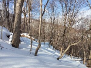 登山道脇の樹木には「根開き」が始まり、春の訪れを身をもって感じながら一歩一歩「藻岩山」山頂を目指して