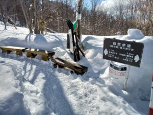ひたすら歩き続けると瞬く間に「日本初のスキーリフト跡地」へ辿り着きました。