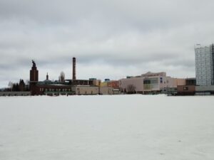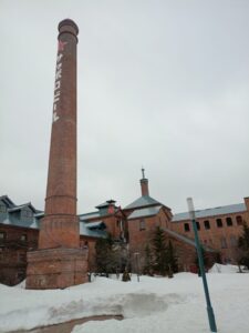 「サッポロビール」工場跡地には、まだ残雪がかなり溶けずにありました。