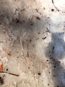 すっかり春めき絶好の洗濯日和の晴天に恵まれた、今日、「円山川」や「円山」登山口周辺の雪解けが進み、雪の下に閉じ込められていた木の葉や木屑があちらこちらに顔を出しています。