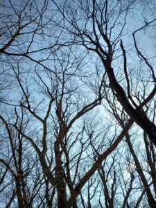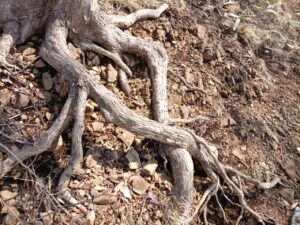一週間程前の樹木には根回りが進んでいましたが、土道の方が勝っているようです。見上げると、青空が広く澄み渡り眩しいほどです。
